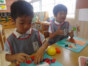水中にいる魚を作ったクラスもありました(*^_^*)