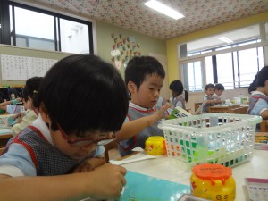 ハサミを使って嬉しそう(*^_^*)