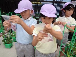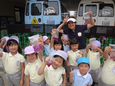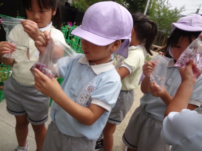 朝顔の花びらを使って色水作りをして楽しみました(^o^)/