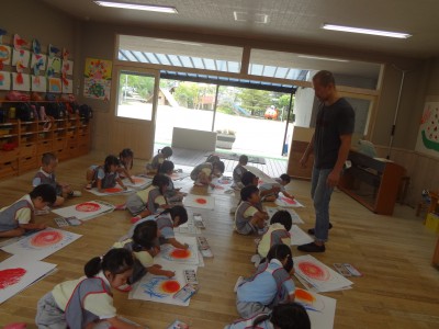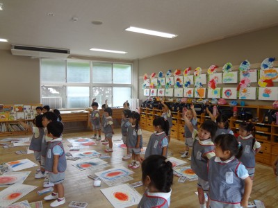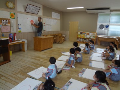 「太陽上手に描けたよ!」とみんな楽しく絵を
