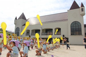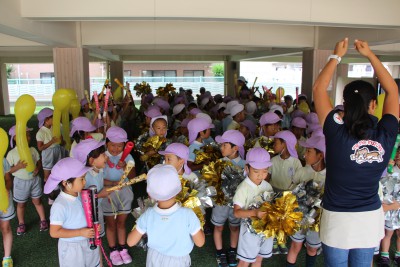 女の子はしてみたかった応援グッツと風船飛ばし♪