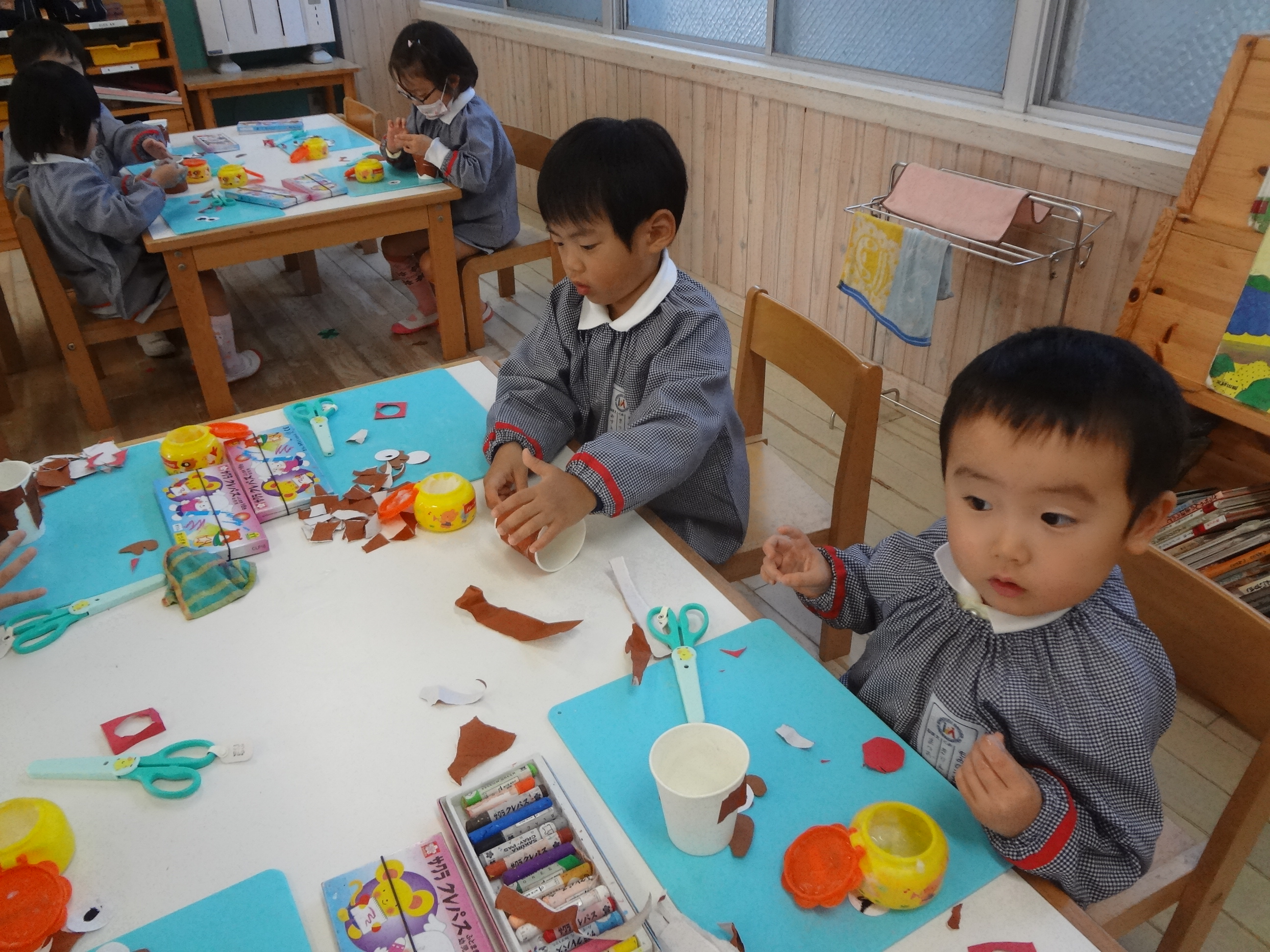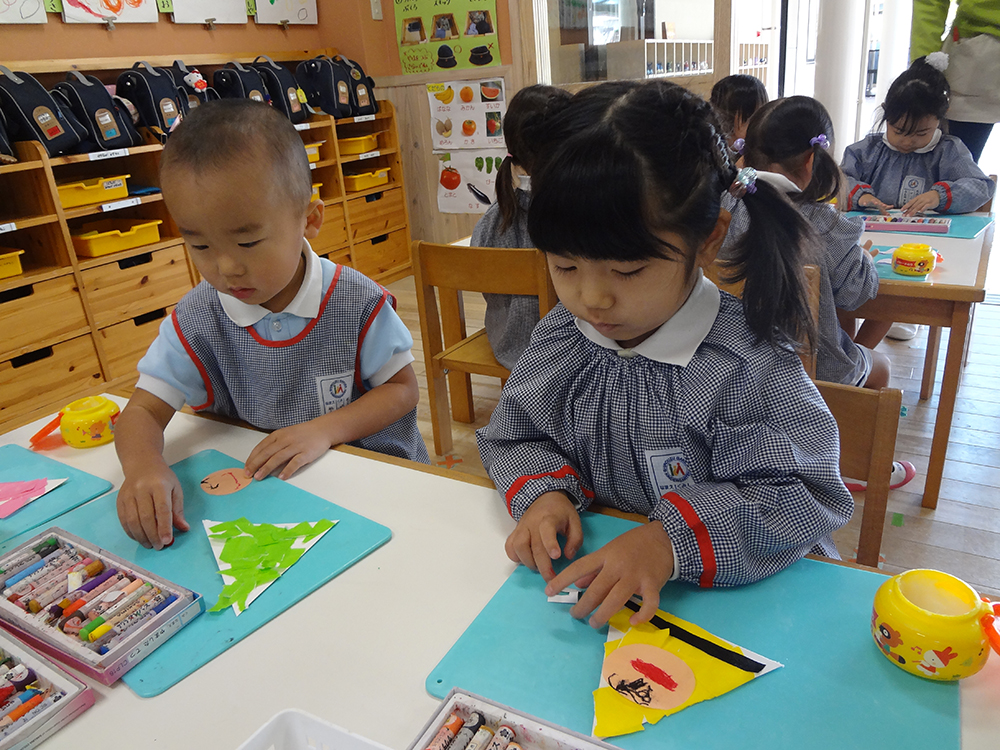 今日の年少組は壁面製作をしました