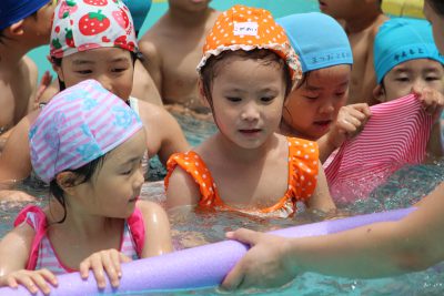 プールに入れるとウキウキしていると