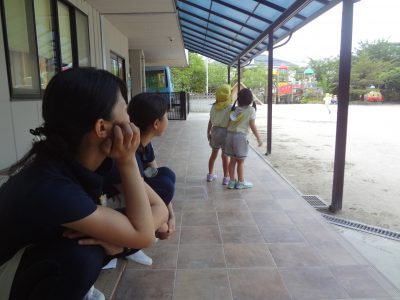 園庭の隅の溝掃除や外の倉庫の掃除等