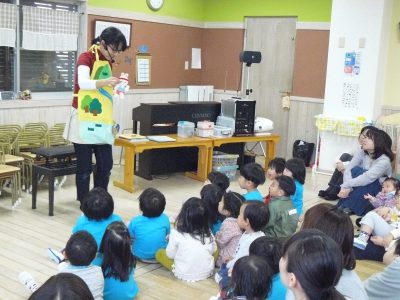 絵本だけではなく、「うさぎとかめ」のエプロンシアターにも