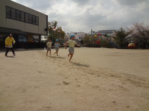 今日は久しぶりに晴れたので、園庭指導を行いました。