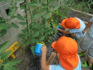 朝顔やトマトの水やり!