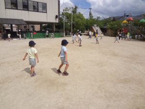 園庭ではサッカーや野球、ドッジボールが人気です!