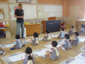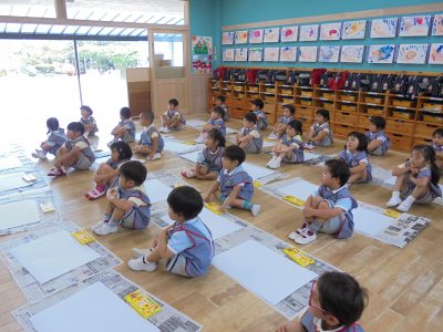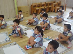 形先生の魔法のような言葉掛けで、画用紙いっぱいに描く子ども達。