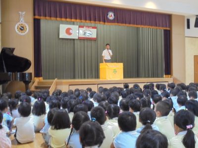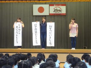 先生達の劇を見て一学期に頑張ったことを振り返り