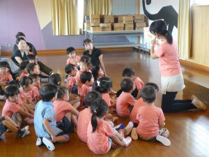大型絵本や、紙芝居など、たっぷりと読み聞かせを行いました。