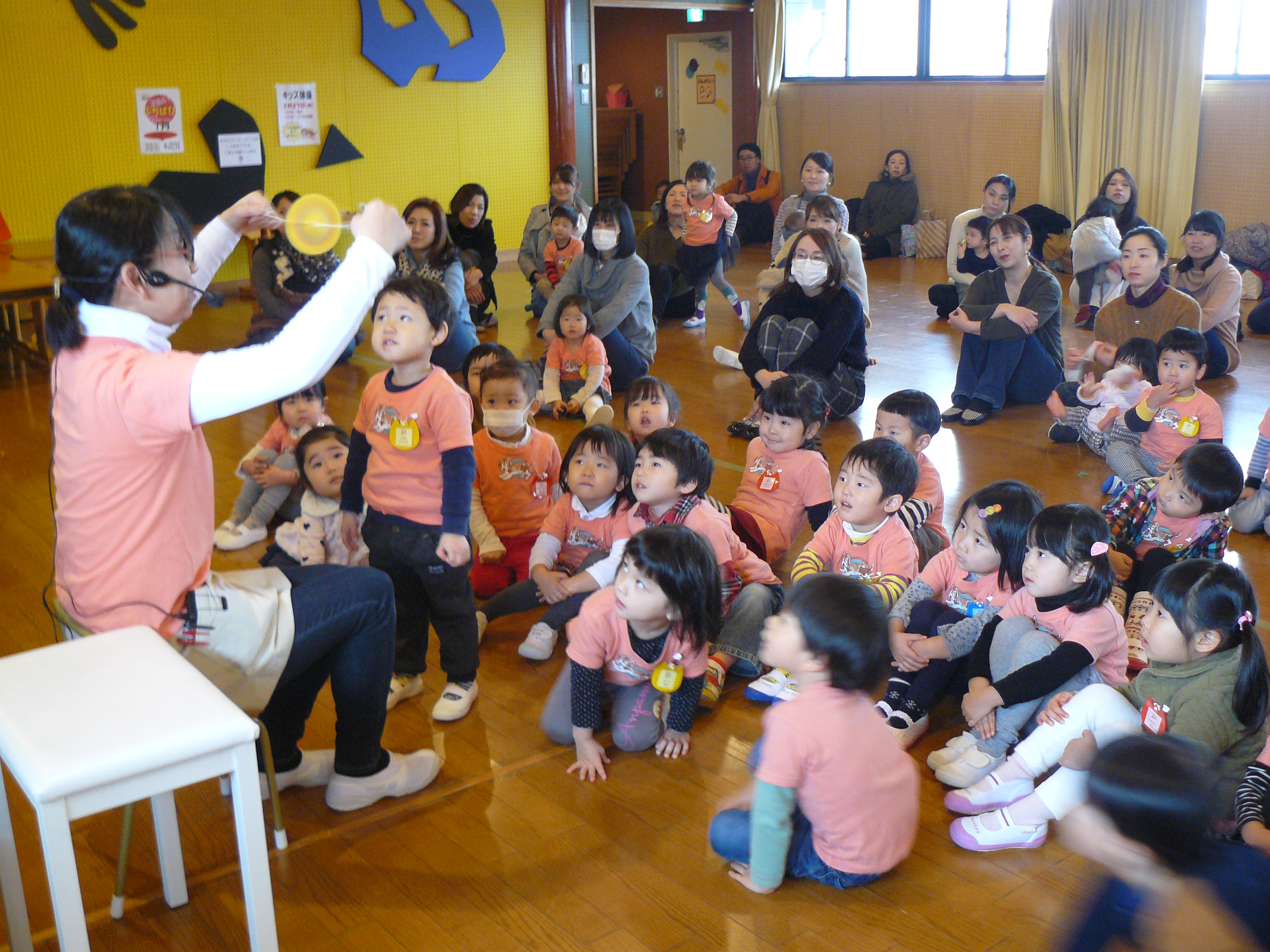 本日の内容は、リズム体操と読み聞かせ、