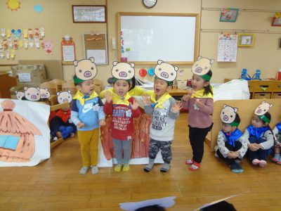 その頃二歳児は、劇遊び「三匹の子ぶた」をしました!