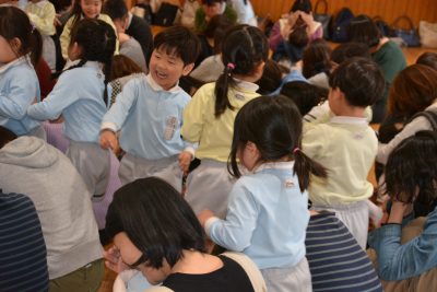 ちゃんと下を向いて隠れて下さった保護者の皆様。