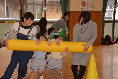 ハイハイやほふく前進でトンネルをくぐるだけで、楽しいんでいた子ども達♡