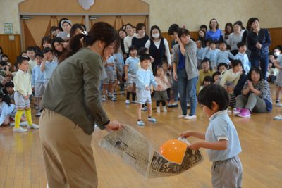 みんなが運んでくれた風船を最後は担任の先生が!!