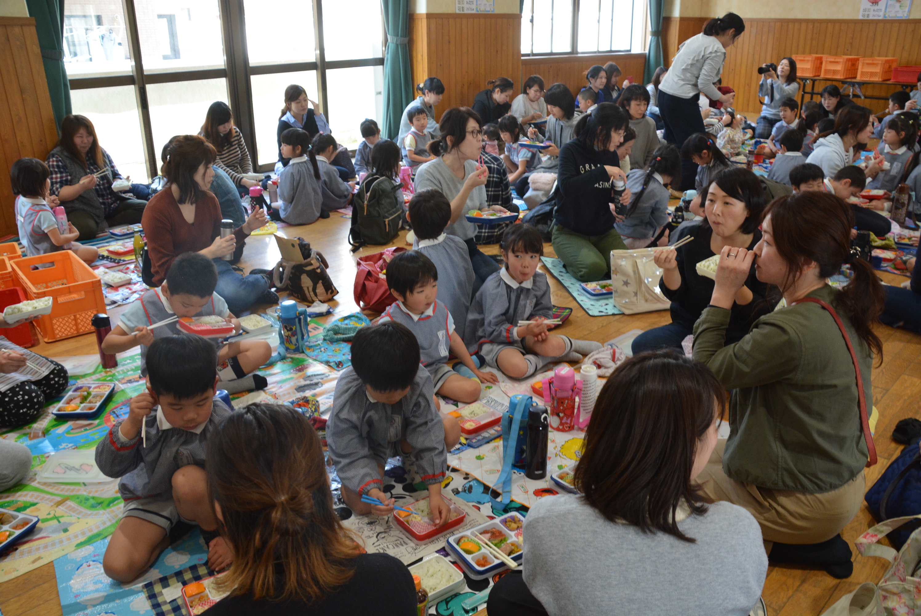 各自シートを敷いてみんなで楽しく食べました♪