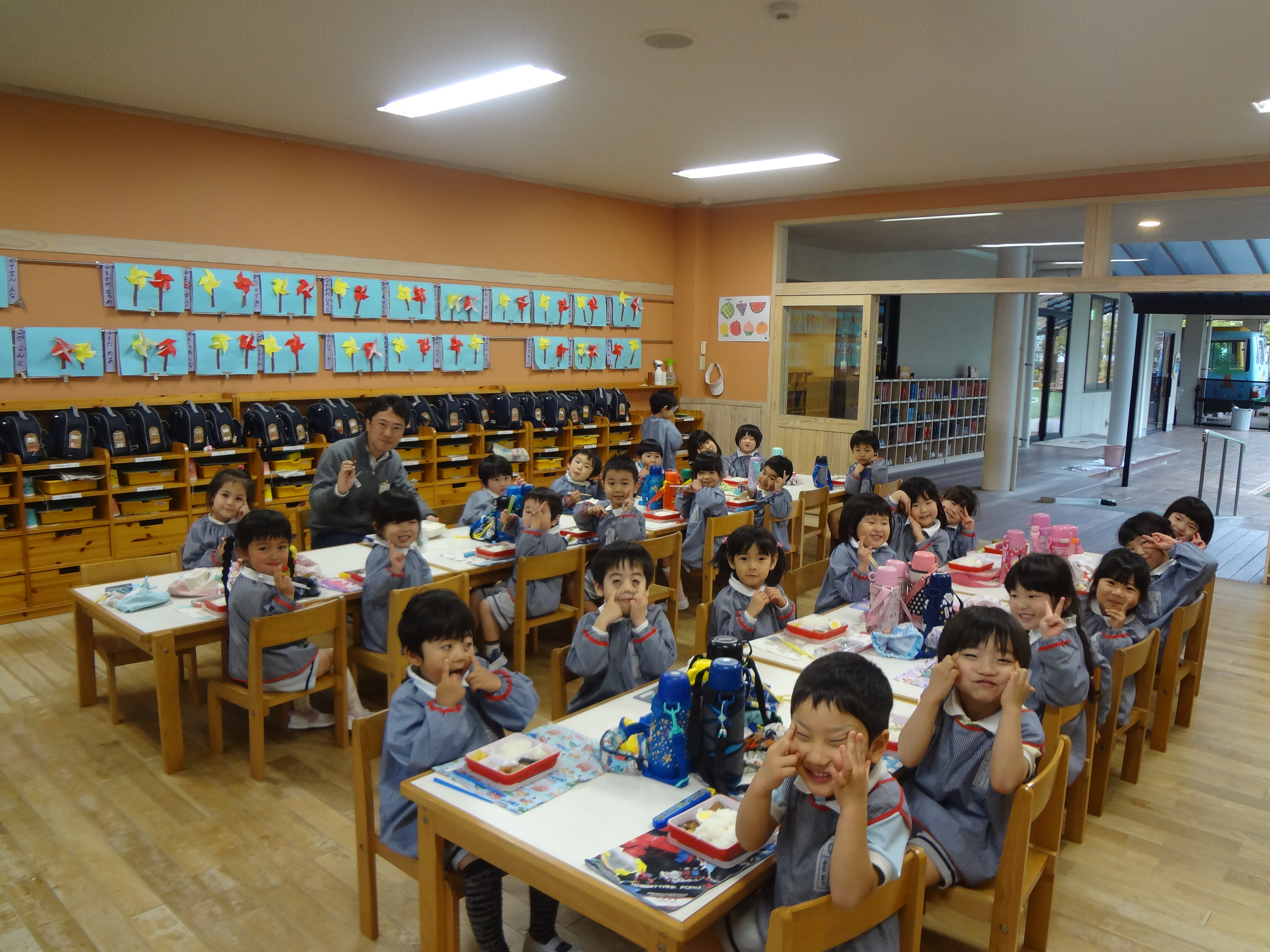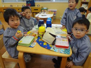 そして、給食中のつぼみ組を覗いて見ました!