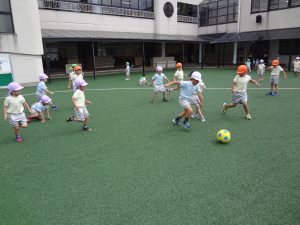 幼稚園でも毎朝ミニワールドカップが行なわれています!(笑)