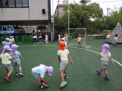 幼稚園でも毎朝ミニワールドカップが行なわれています!(笑)
