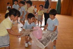 触れ合い遊びの時間は、変身おばけが登場しました。