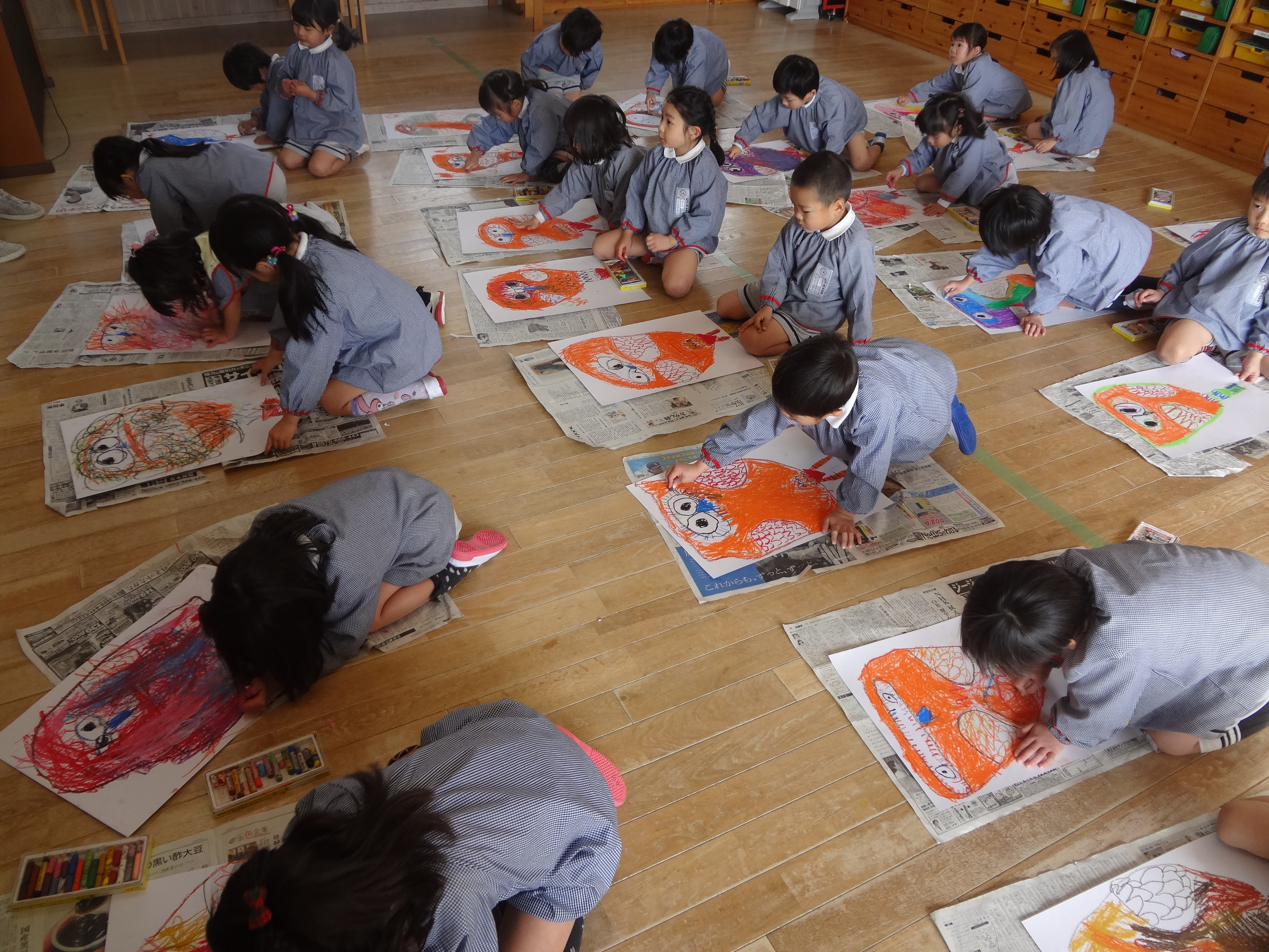 年中組はお家やふくろうを書きました!