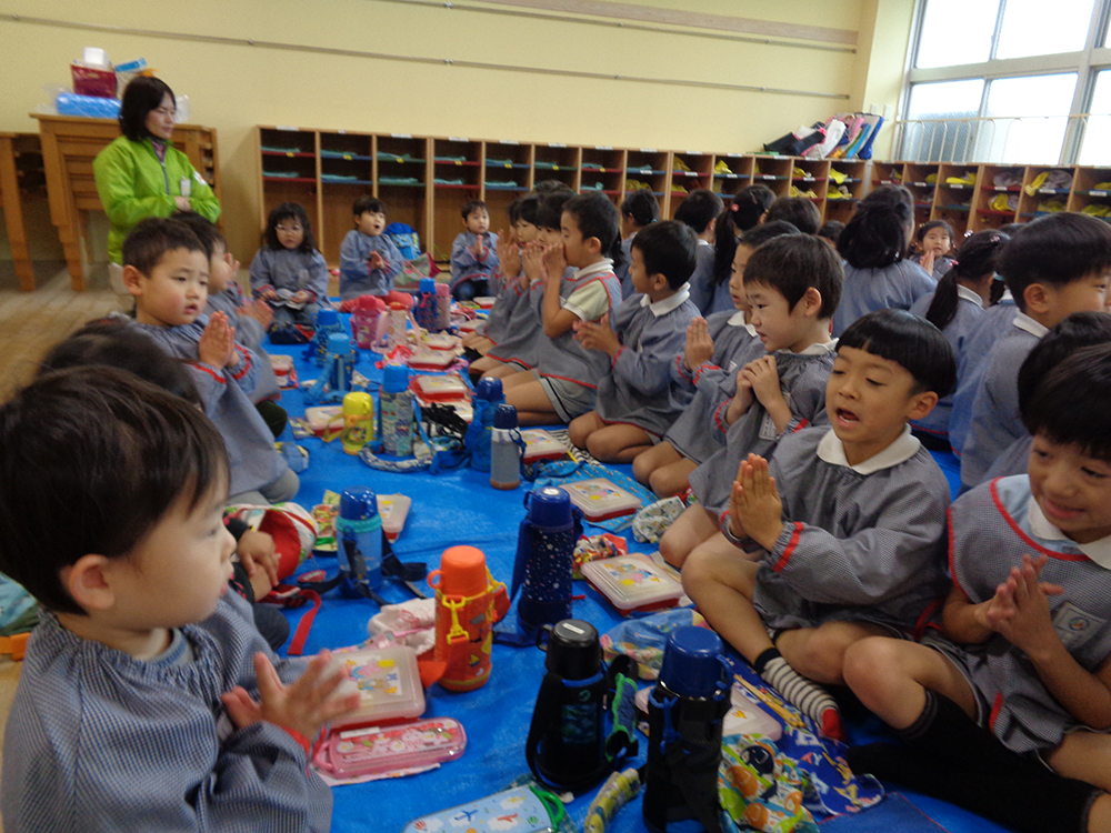 園歌を大きな声で歌う事ができ、園長先生の話も
