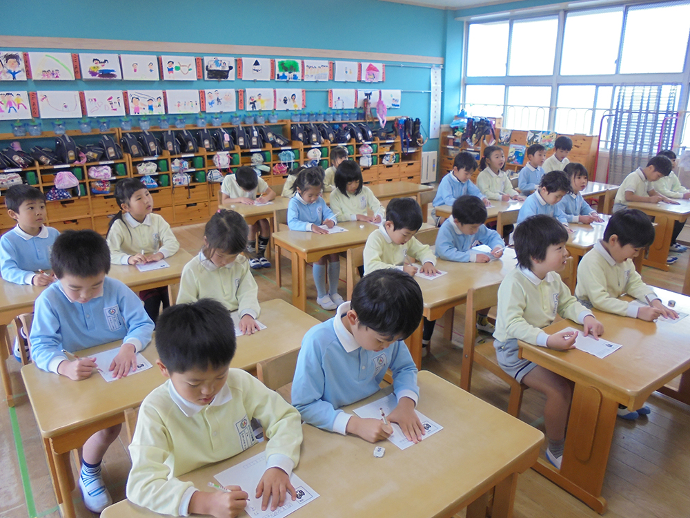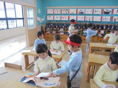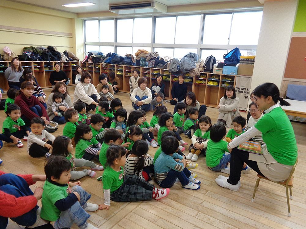「先生が前に立ったら、お話が始まるよ。」と伝えると
