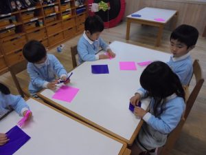 年少組は、折り紙に挑戦しました♪