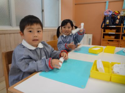 そして、年少組は初めての粘土!!
