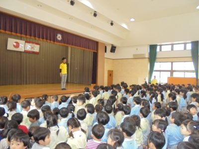 二歳児から年長までみんなでキンダーホールに