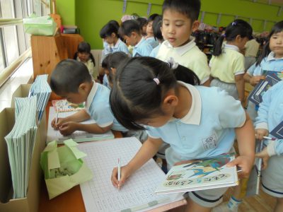 年長組は、絵本貸し出しがスタート!