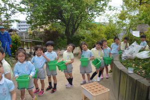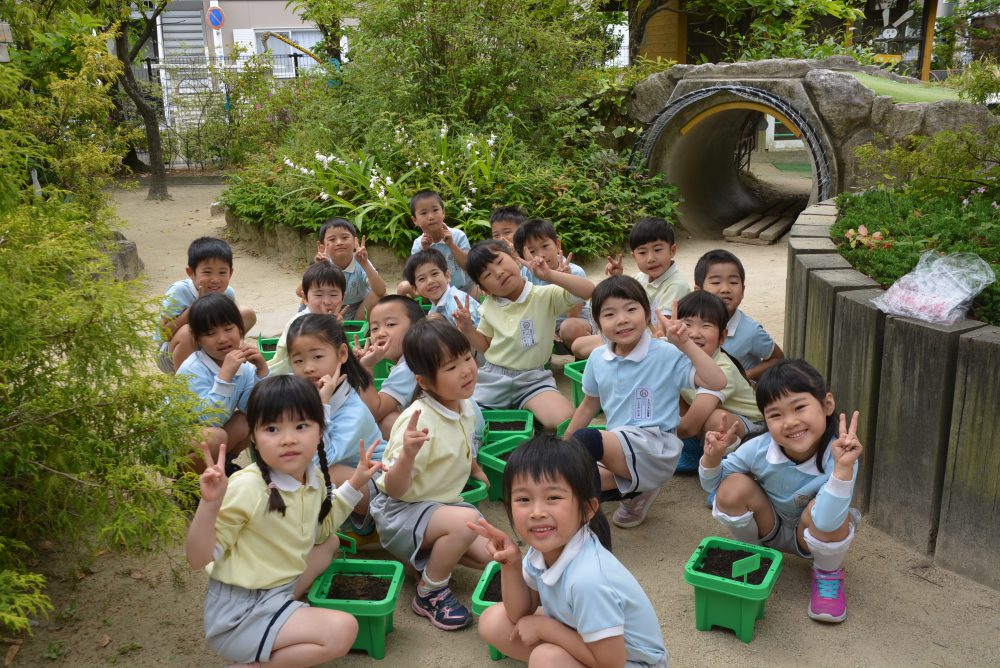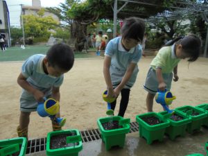 土に触れ、朝顔を植えました。