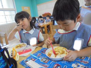 「幼稚園のカレーおいしいっちゃんね」と