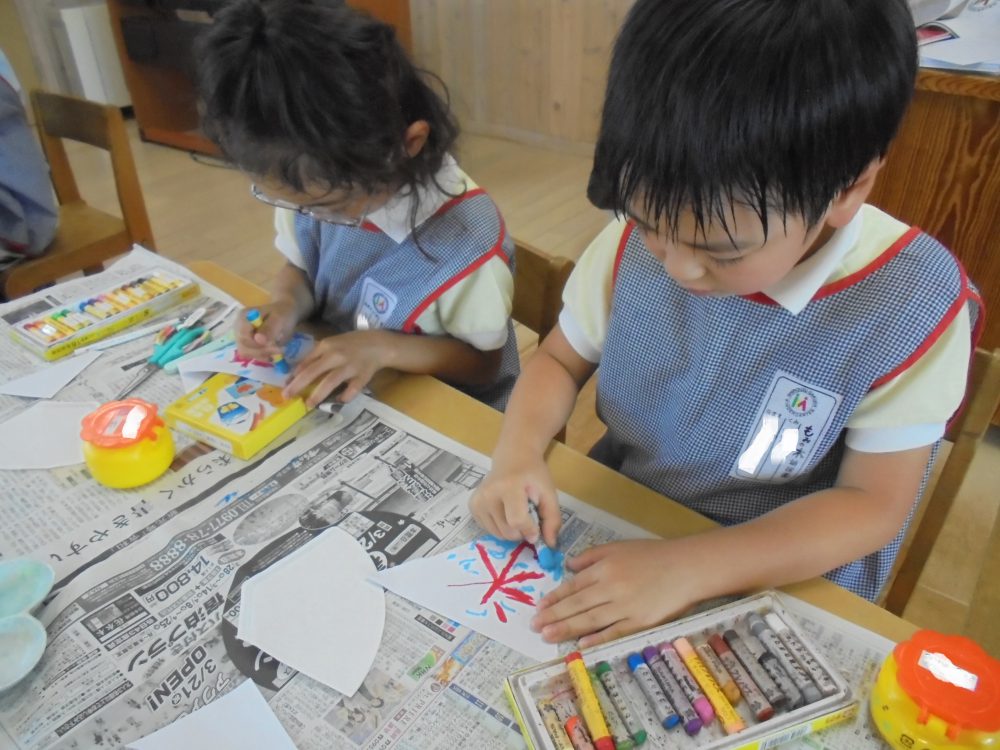 年長はハサミを使って