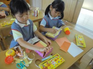 折り紙も丁寧に貼っています!