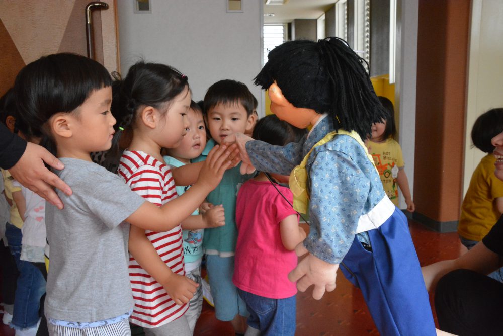 最後は劇に出てきた人形とハイタッチ!