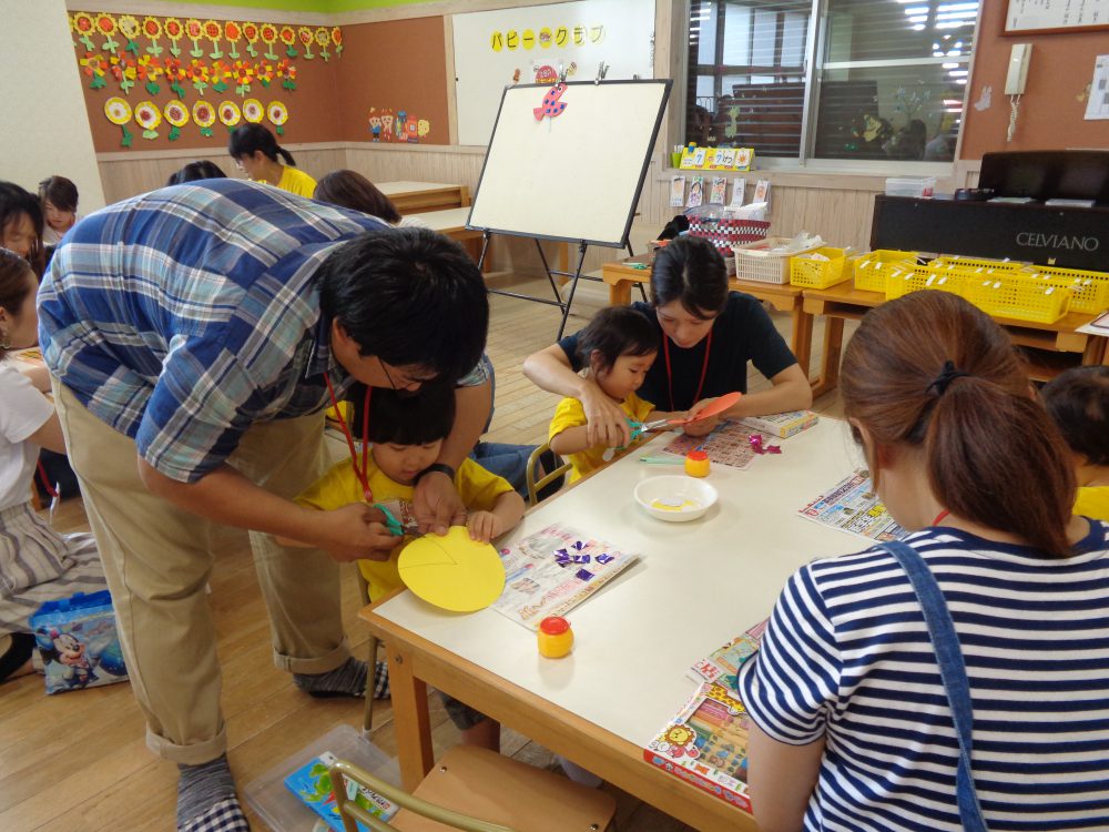 今月は、17日(水)の「合同パピークラブ」で使う「さかなのうちわ」を製作しました。