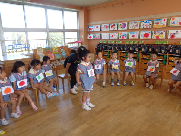 自分で果物の絵を描き、フルーツバスケットをしましたよ!