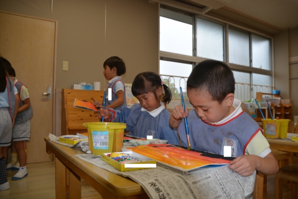 自由画では夕焼けを描きました!