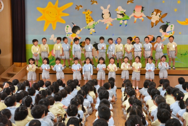 今月の誕生会で当たったゆり組とひかり組が