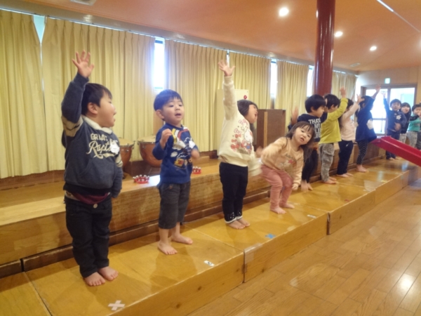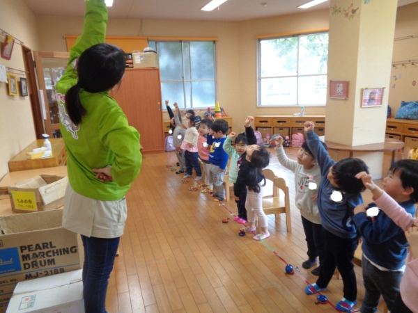 音楽に合わせて、力いっぱい手を伸ばしたり、