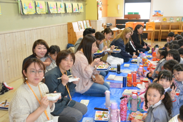 楽しいゲームの後はみんなで給食を食べましたよ。