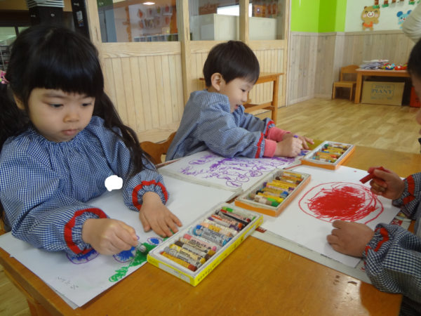 そして、二歳児は自由画をしましたよ!!