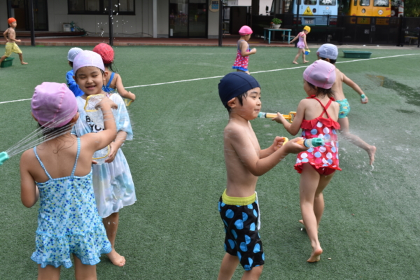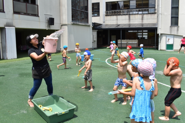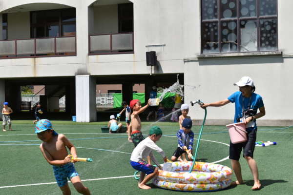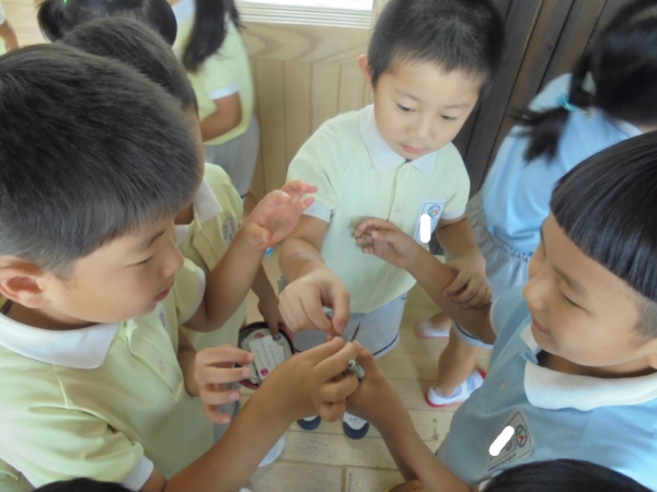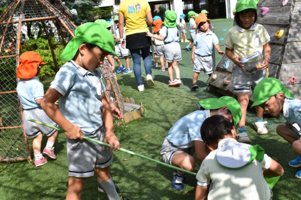 年長組はセミ取りに夢中です!!トンボやカエルも!