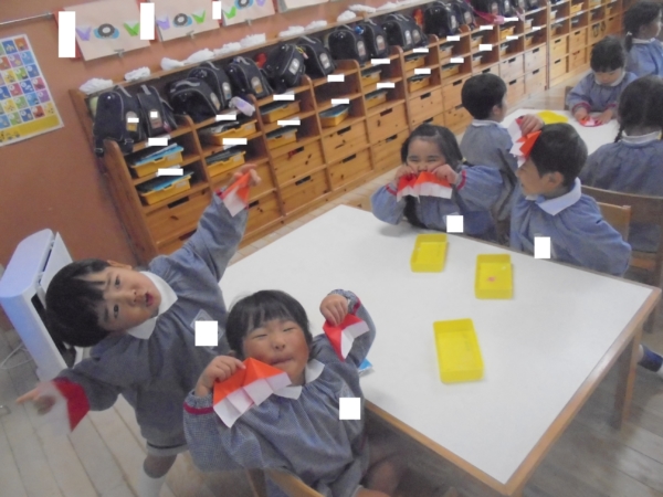 初めて作る子どもが多く、教師の話をしっかり聞いて折っていました。