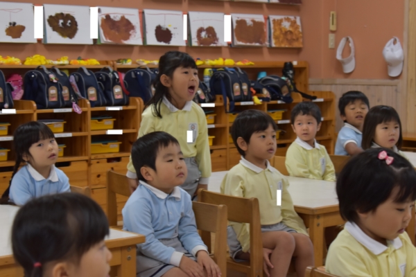 朝の会では大きな声で名前を言ったり園歌を歌ったりしました!