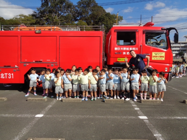 「こんなに大きいの!!」と本物の消防車にはびっくり!