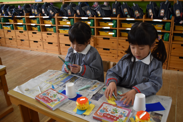 冬休みに自分でシールを貼ったり、絵を描いたりしたカレンダーを