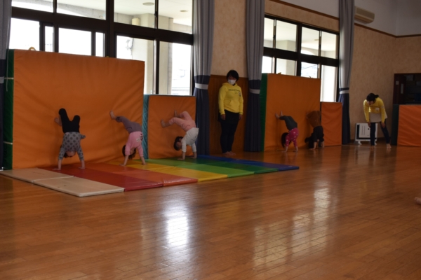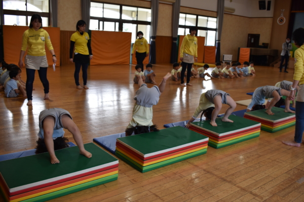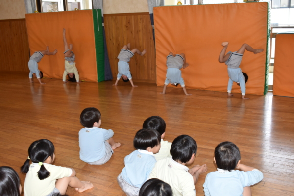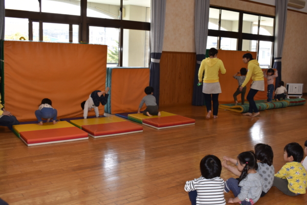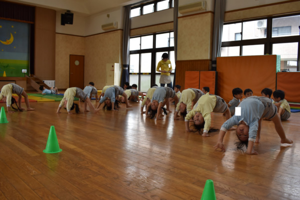 年少は各クラスでブリッジ歩きと